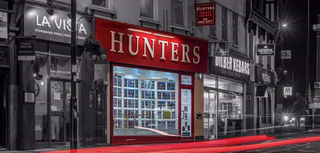 Hunters are located in prime positions on busy High Street locations with a window displaying a healthy number of quality properties for sale in Barnet.